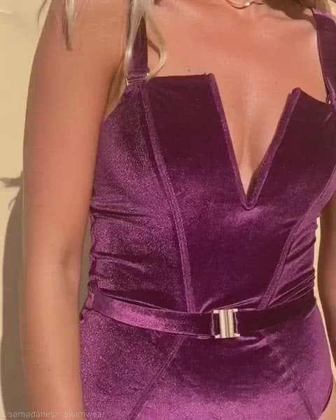 Purple Flame VelvetLimited Edition Victory Rich Purple Velvet – Crafted from luxurious Italian velvet, this swimsuit is lined with sculpting fabric to ensure a perfect fit. Unlike most velvet swimsuits, the Victory Velvet maintains its shape, swim after swim, without sagging or dragging when wet.